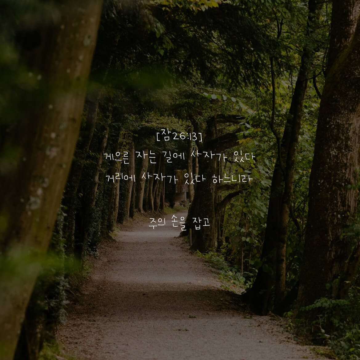 누구나 장애물과 위험 요소를 볼 수 있다. 그러나 조치를 취하고 경계하며 해결하는 자는 부지런한 자다. 두려움과 염려를 해결하는 것은 믿음이다. 믿음은 아는 것이 아닌 행하는 것이다. 주를 신뢰한다는 것은 주가 해결해주심을 믿고 사자가 있는 길을 나서는 것이다. 주 앞에 매달려 주의 손을 꽉 붙잡고 작은 걸음일지라도 내딛는 것이다. 내 주변에 사자가 많다. 그동안 사자가 두려워…