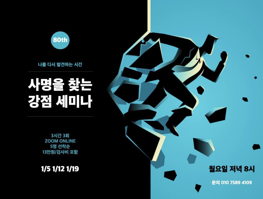 2) 1월 5, 9, 12일 – 80차 사명을 찾는 강점세미나(온라인)