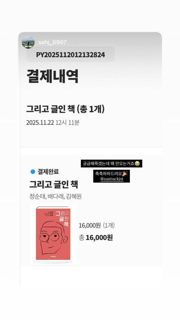사랑하는 사람들(배다래, 김혜원, 정성운)과 함께 책을 출간하였습니다. 대단한 지식과 정보가 있는 책은 아닙니다. 가볍게 읽고 가볍게 넘길 수 있는 책입니다. 하지만, 이 책이 나오기까지는 정말 오랜 시간과 수고가 있었습니다. 한 줄의 문장을 어떻게 표현하고 그려낼까에 대한 해산의 고통이 있었습니다. 그러나, 다 표현할 수 없습니다. 모든 것을 설명하려 하지 않았습니다. 책을 읽는 독자의 몫으로 남겨 두었습니다. 제가 쓴 글과 문장, 다래 자매님의 캘리와 혜원 자매님의 일러스트는 답을 주는 글과 그림이 아닌 또다른 생각을 묻는 질문입니다. 언제든 질문과 궁금증이 생기시면 제게 연락을 주십시오. 함께 이야기를 나누고 싶습니다. 책의 구매는 ‘부크크’, ‘예스24’ 에서 하실 수 있습니다.