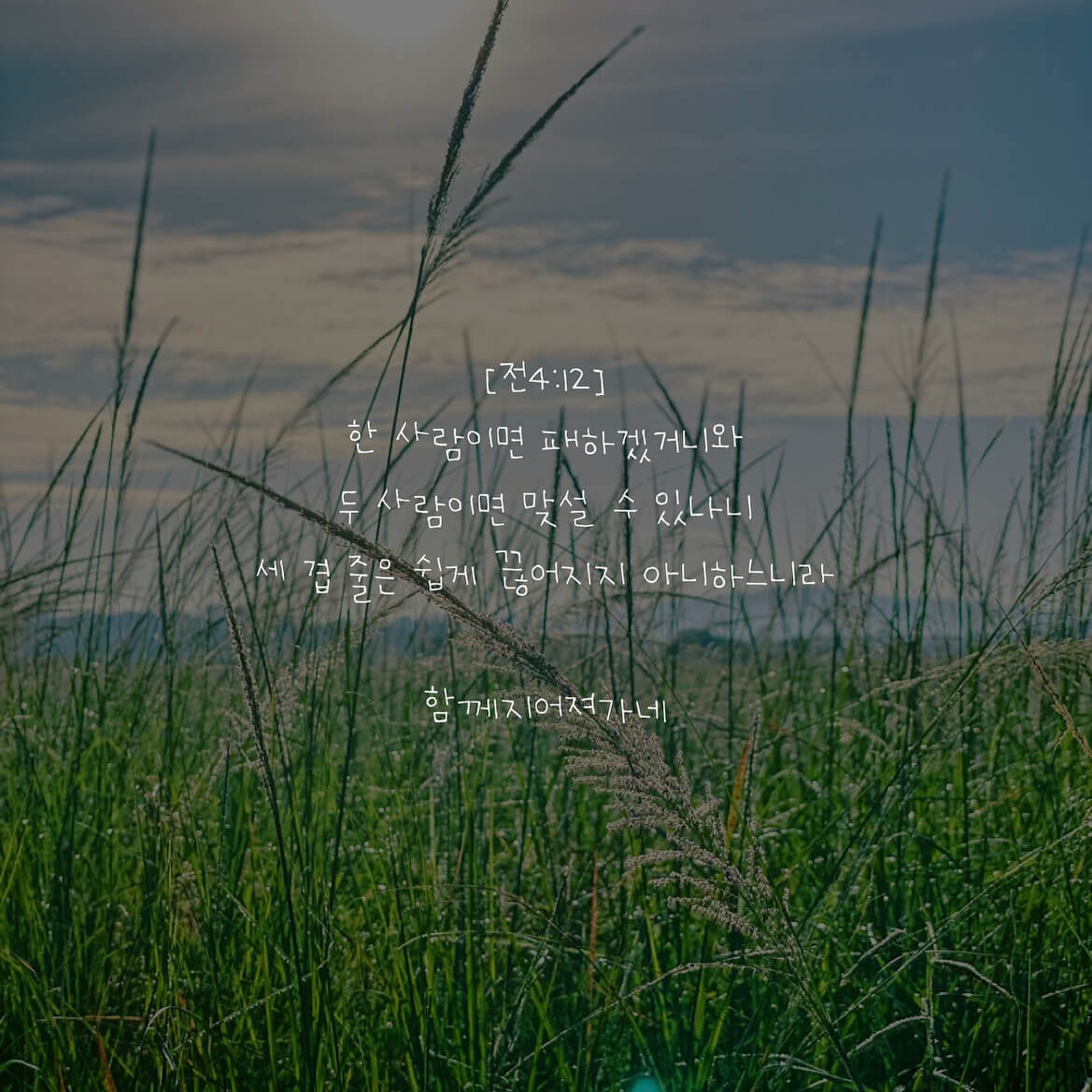 사람의 뇌는 1/3의 연결을 가지고 살아간다고 한다. 모든 것을 잘하는 것이 아닌, 세 개 중 하나의 강점을 가지고 살지만 다른 두 사람과 연합하며 살아갈 수 있도록 설계된 것이다. 혼자 살아갈 수 없다. 세 사람이 함께 한다면, 서로의 그림자를 가려줄 수 있는 관계가 되는 것이다. 결국 인생은 누군가를 의지하고 누군가에게 도움을 주는 삶인 것이다. 내가 바라고…